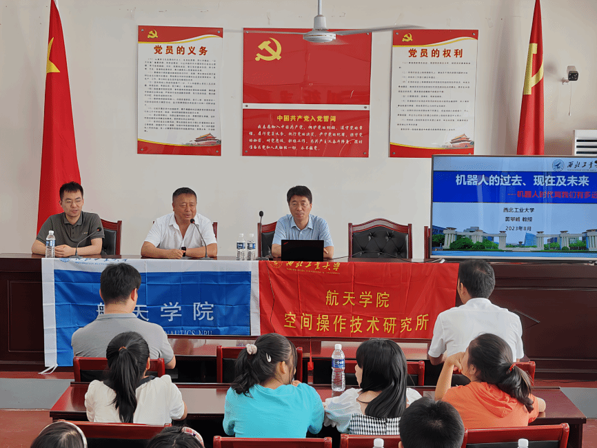黄攀峰教授应邀为杨家坡村的初高中生们讲授了题为“机器人的过去、现在及未来”的科普讲座,在场的同学们认真听取讲座,并踊跃提问,现场氛围十分活跃。讲座结束后科普队老师们为同学们赠予具有“三航”特色的纪念品。