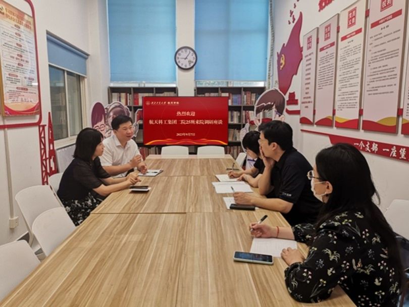 首先,黄越代表学院对中国航天科工集团二院25所一行的到访表示热烈欢迎,重点介绍了学院党建与业务融合发展的典型做法及建设成效,以及学院党委在进一步增强基层党组织政治功能和组织功能方面的创新举措。随后,双方围绕发挥基层党支部战斗堡垒作用和党员先锋模范作用、党建与业务融合发展等方面展开交流研讨。通过相互深入沟通了解和积极发挥各自优势的基础上,双方在基层支部共建、联合技术攻关、总师型人才培养、学生实习实践等方面达成进一步合作意向,以党建引领凝聚发展合力,携手共建共促高质量发展。