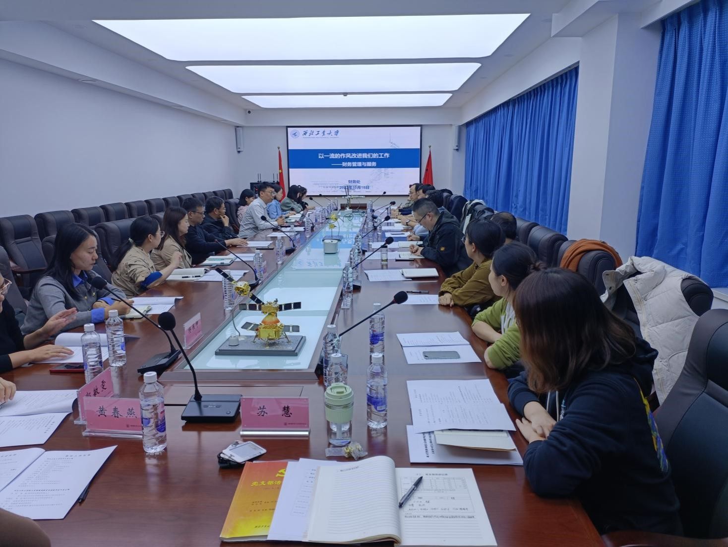 最后双方单位领导对本次支部联学共建的成效进行了总结。精导所首席学科带头人周军教授对在微小卫星技术及应用国家地方联合工程实验室建设过程中和澳门科学卫星研制过程中,财务处给予的大力支持表示感谢。财务处韩索民处长对双方支部的进一步党建交流和工作配合给予了更高的期望。此次两个支部的联学共建活动有效增强了学校机关和学院科研团队的沟通合作关系,切实落实了主题教育与实际业务工作相结合的要求,也进一步推动了学校“127”目标实施的落实和落地。