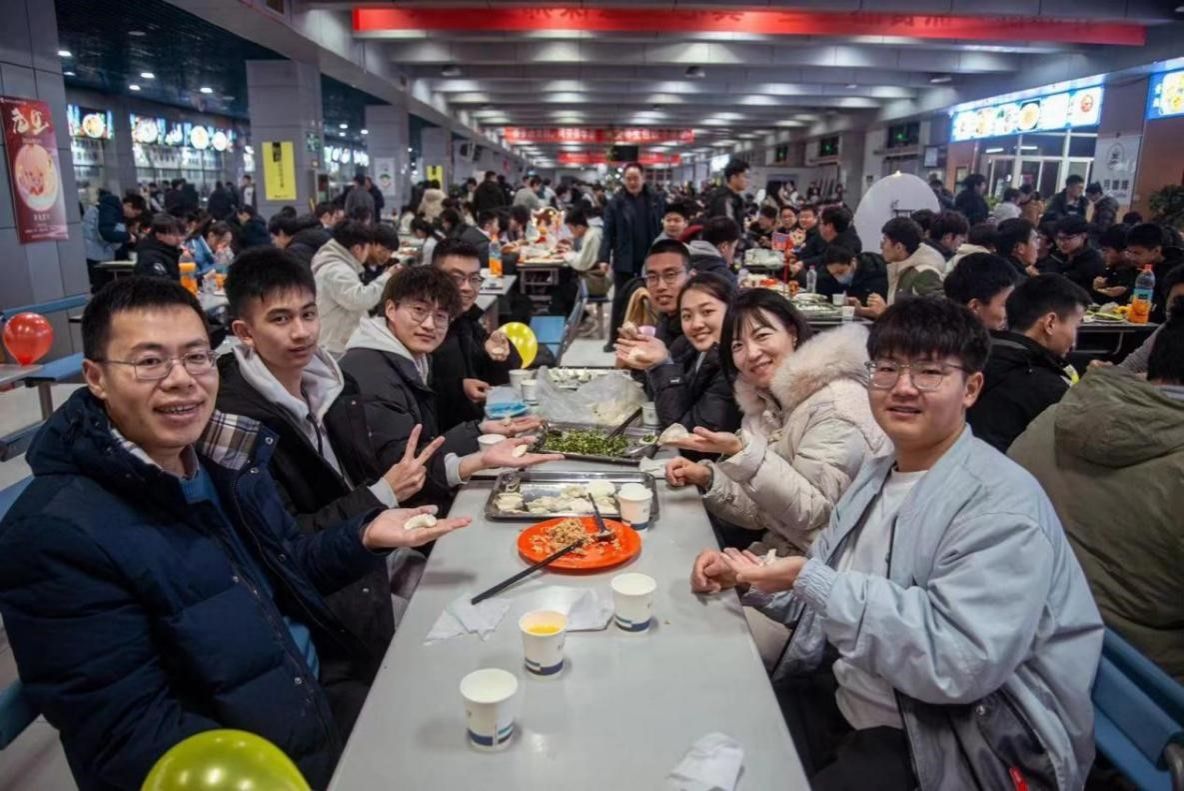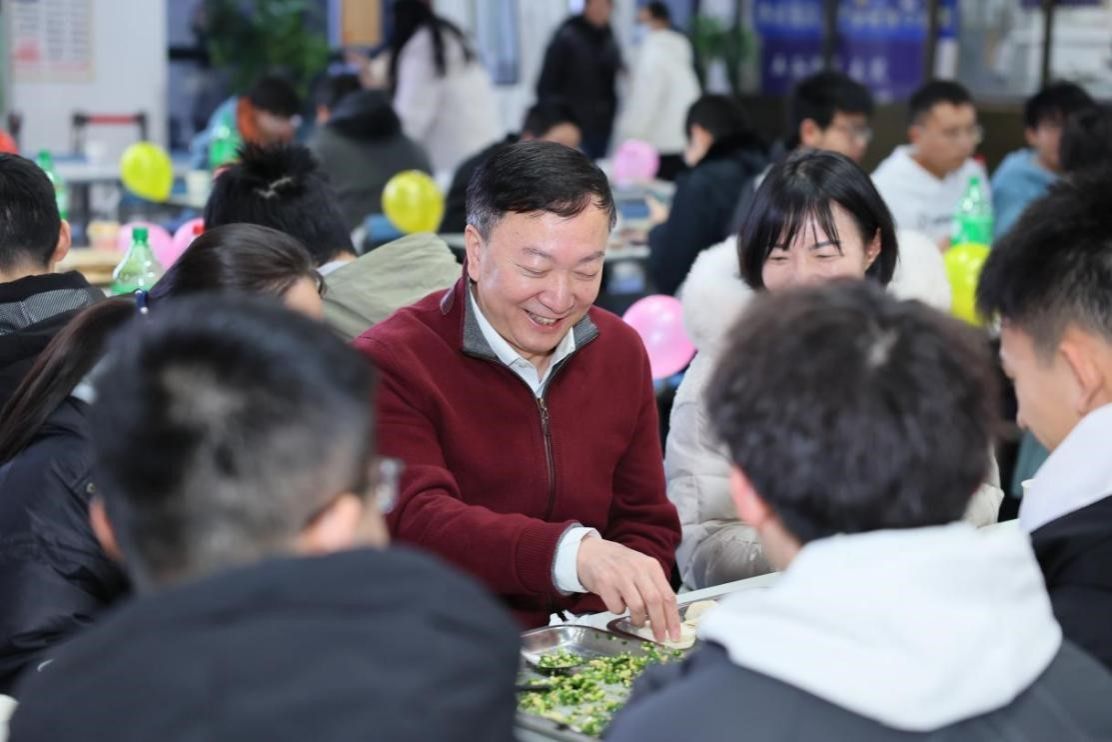 党委书记黄越、党委副书记韩冬、副院长宁昕及各年级辅导员也为同学们送上新年祝福,和同学们一边包饺子,一边交流,欢声笑语中,共同感受着新年的喜悦。