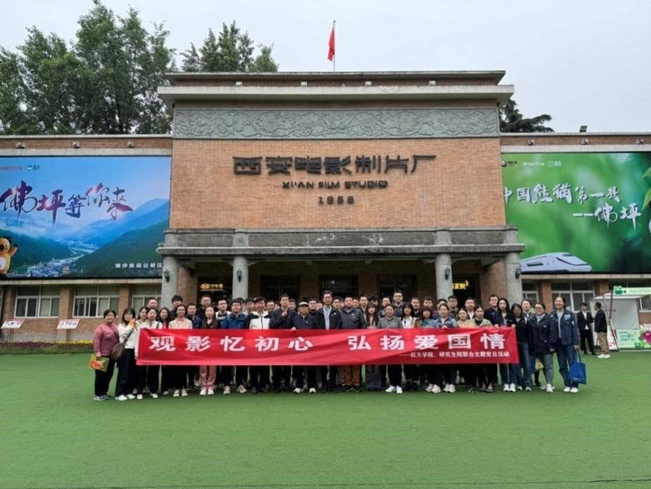 、研究生院师生共赴西安电影制片厂,联合开展“观影忆初心 弘扬爱国情”主题党日活动,并共同观看红色影片《我们的七月》。