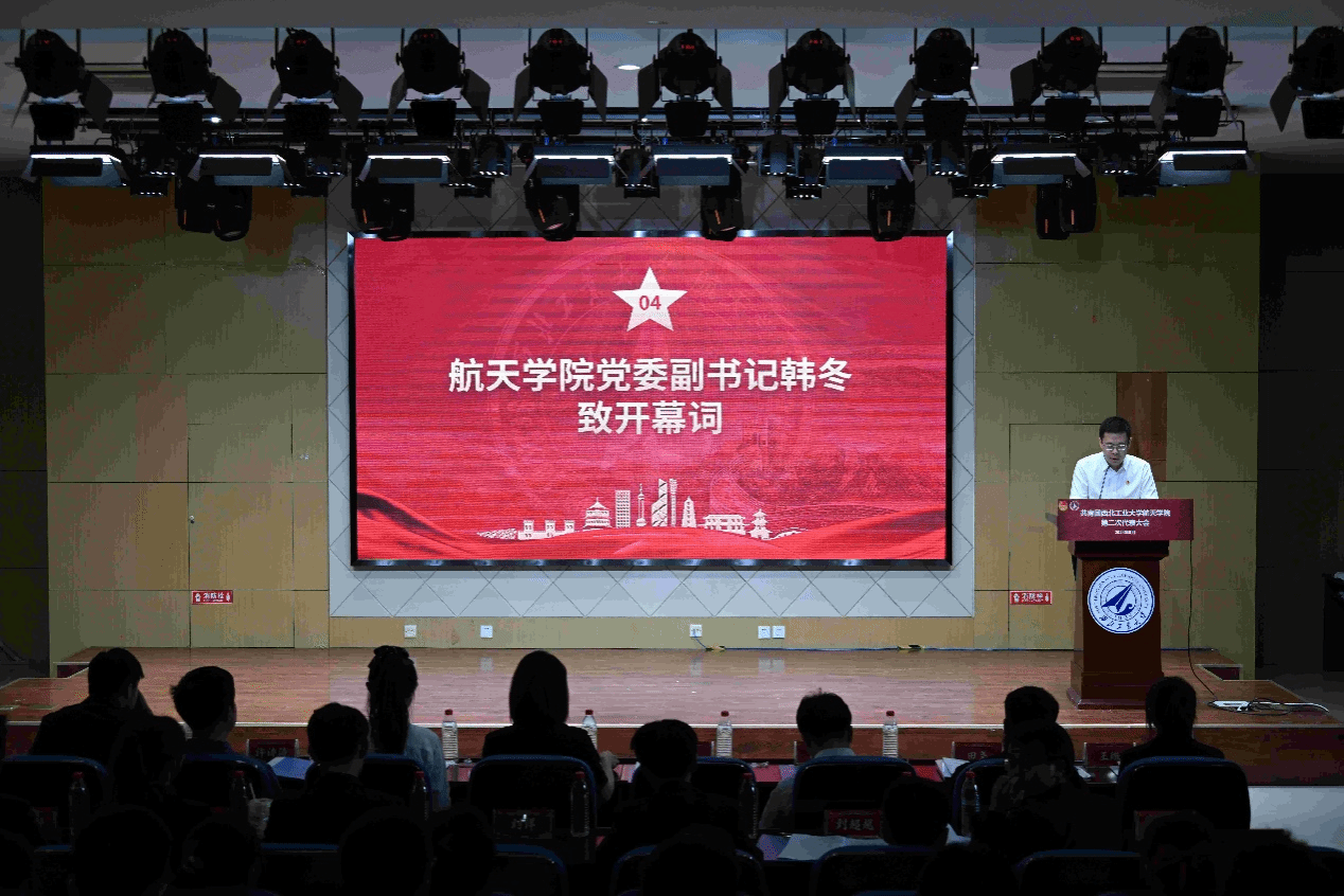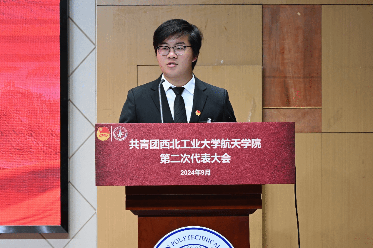 韩冬向到场老师、学生团员代表们表示热烈欢迎,并向学院拼搏在一线共青团工作的师生们致以亲切问候。他明确阐释了本次大会在习近平新时代中国特色社会主义思想引领下,吸纳过往之鉴,擘画未来蓝图的主要任务。他提到,我们通过此次团员代表大会,进一步凝聚青年力量,明确奋斗目标,激发创新精神,为航天事业的腾飞做出新的贡献。在大会即将开幕之际,他向学院共青团工作提出四点希望:第一,加强思想引领,坚定理想信念;第二,铭记时代使命,勇担青春责任;第三,发挥组织优势,服务青年成长;第四,勇于创新实践,助力航天强国。他鼓励同学们珍惜此次大会的宝贵机会,积极参与讨论,认真听取各方意见,为学院的团学工作建言献策。