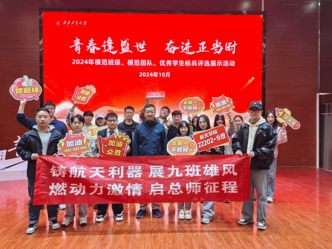 22202-9班由32名硕士生组成,党员人数占比53.13%。班级结合实际制定了对标学校“127目标”的班级“127计划”。坚持以夯实航天总师基础能力为目标,构建“红色筑根、蓝色育魂”双线并行培养模式,从七个维度建设模范班级。班级同学获国家奖学金4人次、一等学业奖学金4人次、优秀研究生13人次、国家级奖项7人次、省部级奖项11人次。班级成员100%来自翱翔战略团队,并全员参与何国强教授为核心的“飞天系列”科研项目,攻坚空天动力领域“卡脖子”难题,实现基础问题“0到1”和工程技术“1到0”双向突破。在科研项目的依托下,科研成果实现多点开花,班级成员在校期间累计发表论文74篇,其中TOP期刊达26篇,国家发明专利9项,软著2项。班级同学100%参加各类国内外学术会议,真正做到既要放眼看世界,更要向世界传播中国声音。班级同学甘于奉献、勇于担当,以昂扬自信的姿态投身学校、学院建设,志愿服务人次300余次,总服务时长超500小时,并受到国家级媒体报道。正值共和国75周年华诞,实干兴邦是航天青年对祖国最好的献礼。党和人民需要我们的航天事业不断进步,9班的航天青年就一定会遵循总书记的指引,“谱写新时代的青春之歌”。