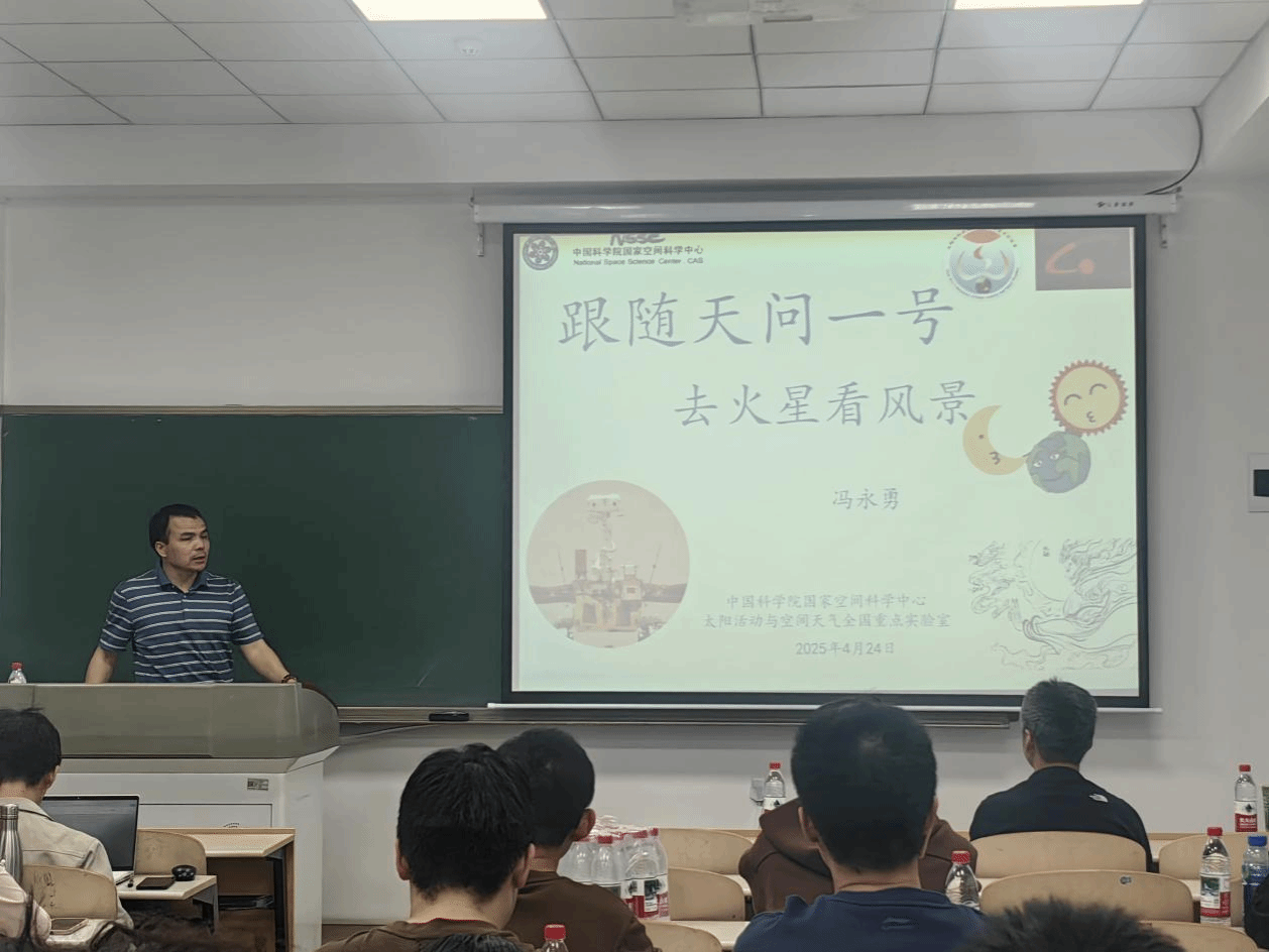 举办“深空探测与空间技术”专题报告会。中国科学院国家空间科学中心冯永勇副研究员、社起飞研究员受邀作主题报告,许贺楠研究员面向本科生开展自培研究生招生政策宣讲,现场学术氛围浓厚。
