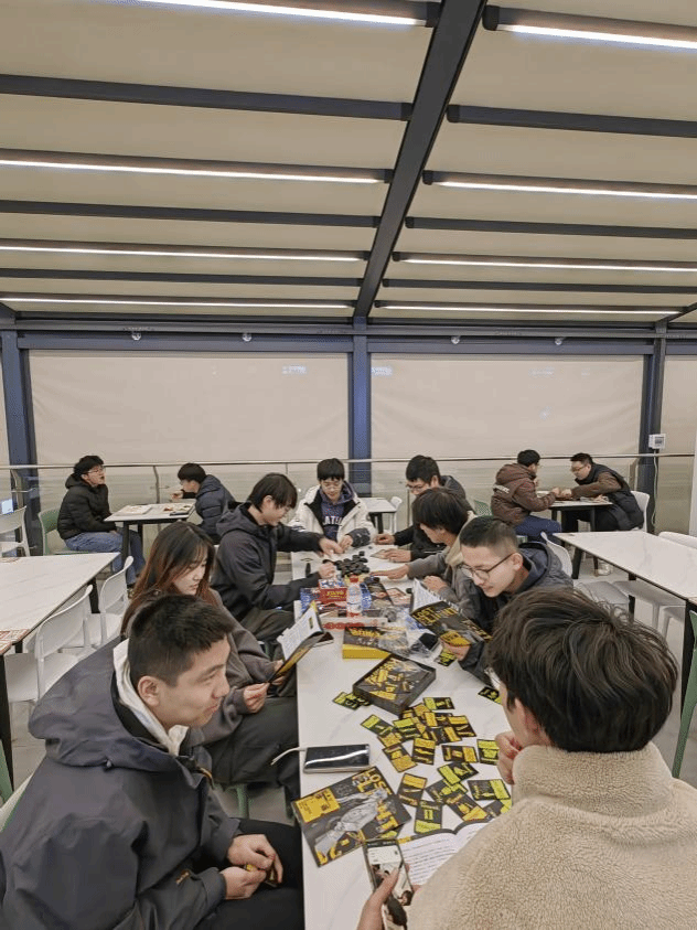 天色渐沉,大家来到海天苑二楼玩起桌游。围坐于桌旁,在欢声笑语中,开启一场场智慧与策略的交锋。每一款游戏都牵引着众人的思绪,大家或是专注思考,或是热烈讨论