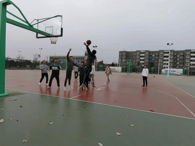 足球热身过后,大家来到星天苑篮球场开展篮球比赛。比赛现场,双方队员全神贯注,配合紧密。传球时心有灵犀,进攻时如猎豹般迅猛,防守时似城墙般严密。整个赛场沉浸在紧张而热烈的氛围之中。