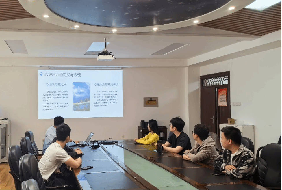 在讲解环节,刘苏毅首先从心理学的角度定义了心理压力,阐述了其来源,如学业压力、科研任务、人际关系及职业发展等方面,并分析了不同个体在面对压力时的常见反应。通过具体案例,展示了压力可能导致的情绪波动、专注力下降、焦虑失眠等表现,帮助同学们更直观地识别自身可能存在的心理困扰。