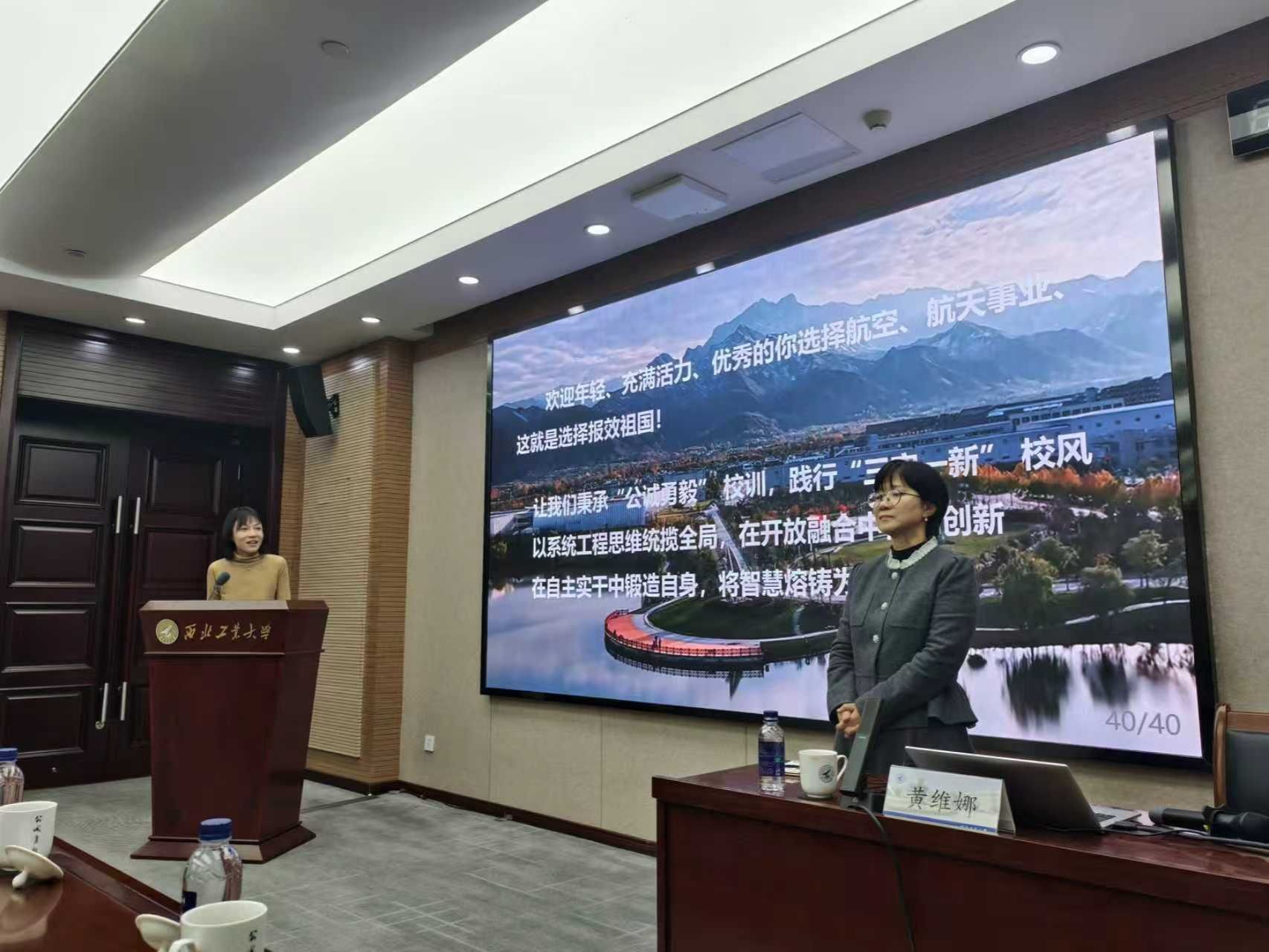 优秀院友黄维娜院士作客翱翔名家讲台,为师生带来题为“系统思维、平台化发展加快实现航空发动机自主研制”的专题报告。学院党委书记黄越、副院长秦飞、副书记韩冬、教师代表以及学生代表共同参会。报告会由学院党委书记黄越主持。