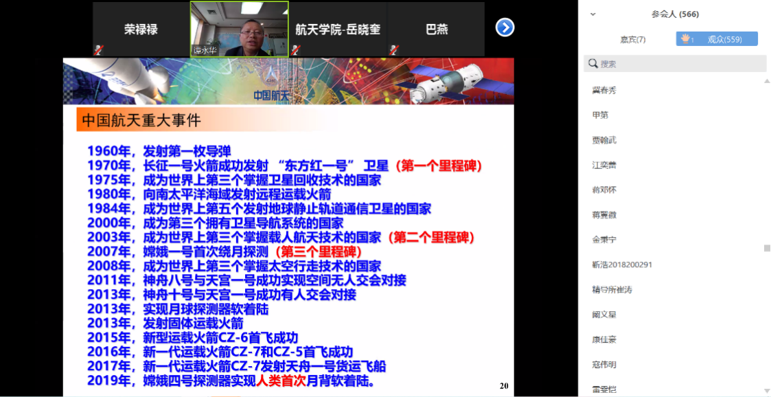知名校友、中国航天科技集团第六研究院谭永华研究员作题为《中国航天的成就与发展》,近千名师生齐聚云端聆听了本场报告,报告会由水果派