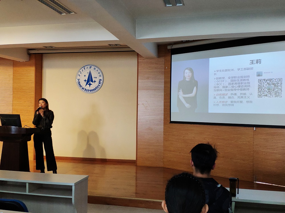在四号楼六楼多功能厅举办了“莉莉老师聊就业之航天专场”分享会,邀请学校党委学生工作部副部长、学生处副处长王莉和就业创业指导服务中心朱莉老师主讲。水果派