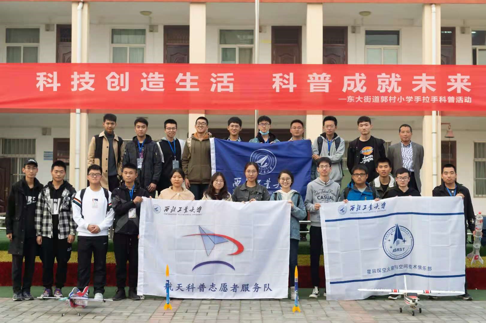 飞行控制研究所研究生第2党支部,于2020年11月13日在陕西省西安市郭村小学联合开展航空航天科普进校园活动。活动内容包括航天知识讲解,自制火箭发射以及航模表演。本次活动旨在弘扬航天精神,普及航天知识,激发小学生探索未知、敢于创新的热情,树立航天报国志向。