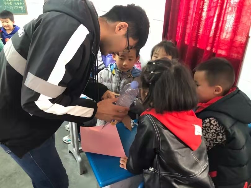 首先,志愿者为孩子们绘声绘色地讲解火箭发射原理,人类登月历史,我国探月工程以及天体运动知识。在航天知识有奖问答环节,孩子们积极举手,并在“小老师”的引导下准确作答。
