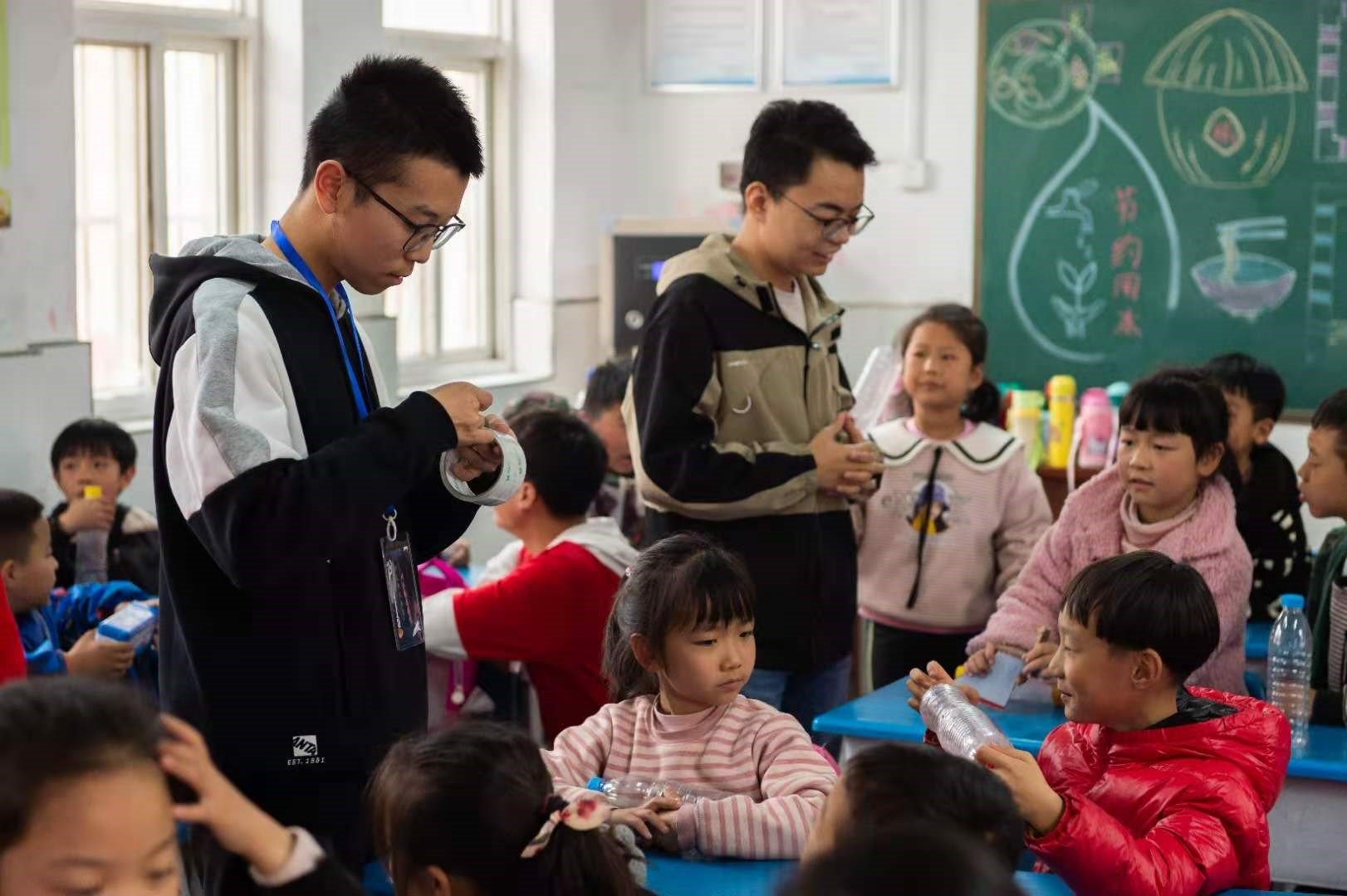 当参加活动的志愿者走进郭村小学的教室时,孩子们充满喜悦与期待的眼睛便一直注视着他们。