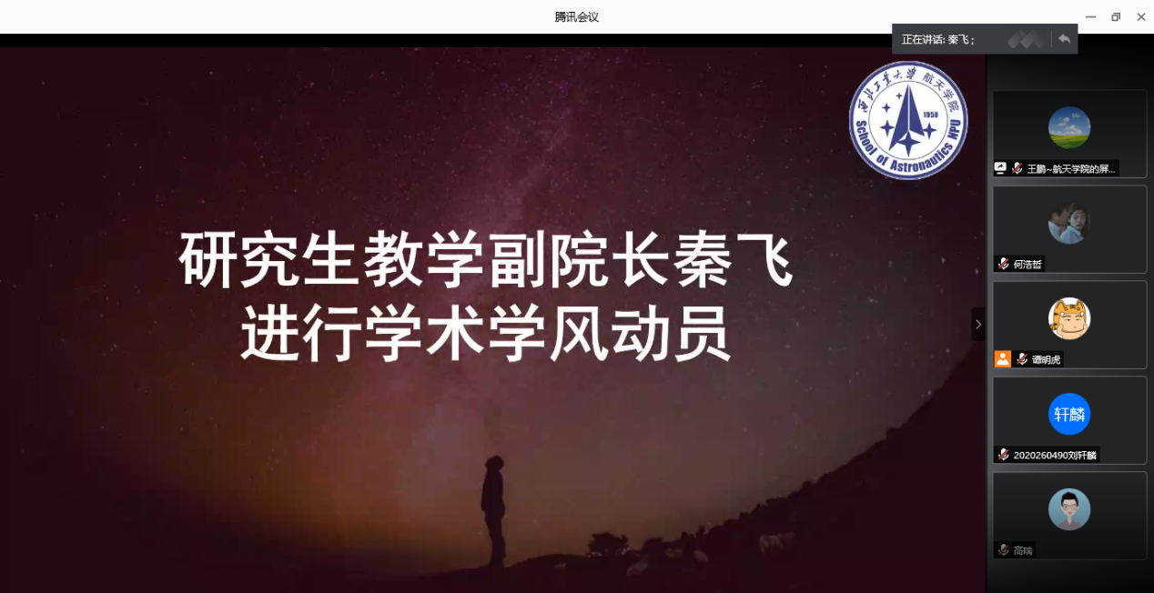 举行2020级研究生新生见面会。由于疫情防控要求,今年新生见面会改为线上进行。见面会上,学院领导与负责老师同2020级硕博新生分享航天精神,探讨交流如何在水果派