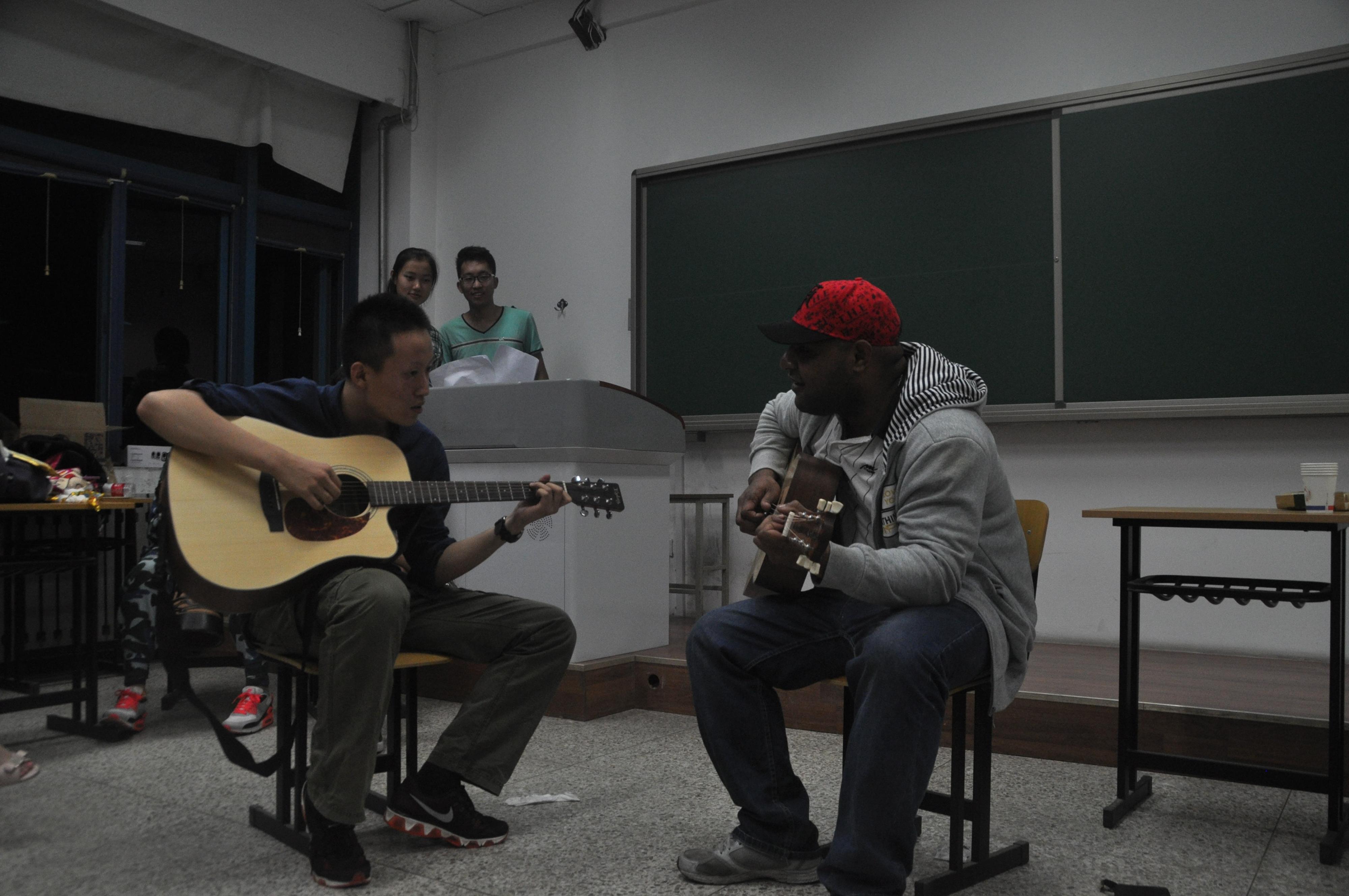 At the beginning of the activity, every student introduces themselves briefly, in that way they got to know each other. Then a guitar show opens the Mid-Autumn Festival party, Chinese students and foreign students started to sing and dance in the music. A student from Fiji initiatively asked to play, which drew a rousing ovation from the crowd.