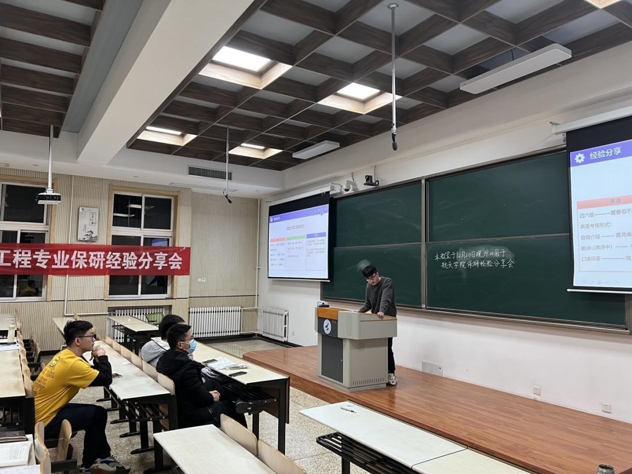 分享会上,4位学长从不同角度分享了自己的考研保研经验与感悟。田照阳通过形象生动的示例,对考研保研基本要求进行了相关政策解读;郑力豪结合自己的实习、面试经历,分享了自己保研面试方面的相关经验;陈焱峰介绍了保研后投递简历、联系导师、复试环节的情况以及需要准备的各种材料;喻世霖介绍了国科大补偿政策的具体内容,并分享了自己有关学业进步的深刻理解和认识,鼓励大家放平心态,积极准备。