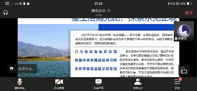 6月25日晚,为动员全院同学们积极参与暑期社会实践、梳理活动流程,航天学院召开了暑期社会实践线上出征仪式。会议由航天学院团委创新实践中心主持,航天学院团委书记肖飞老师参与会议,由航天学院指导的所有实践队队员均与会。