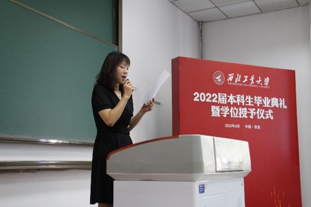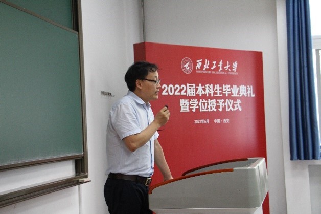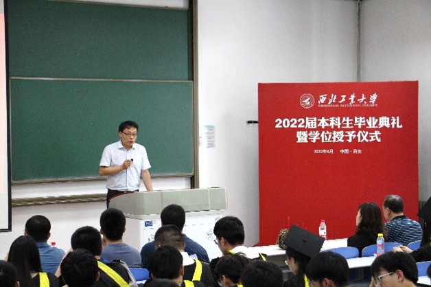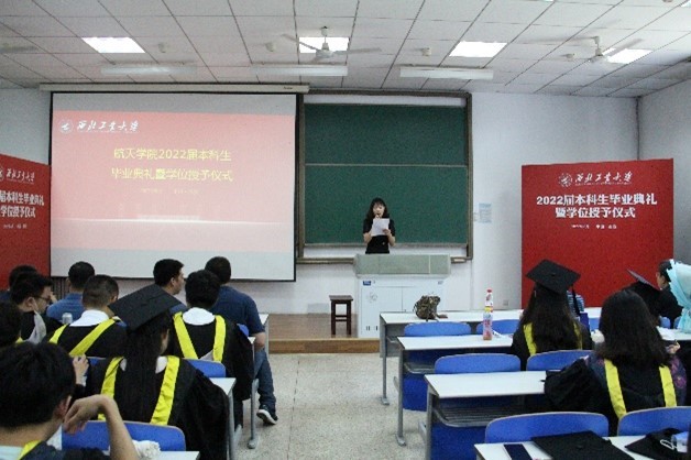2022年6月30日,航天学院2022届本科生毕业典礼暨学位授予仪式,在教学东楼D座205举办,航天学院执行院长岳晓奎、党委副书记(主持工作)黄越,党委副书记韩冬,副院长孟中杰、副院长宁昕、2018级班主任、辅导员参加了毕业典礼,毕业典礼由韩冬主持。
