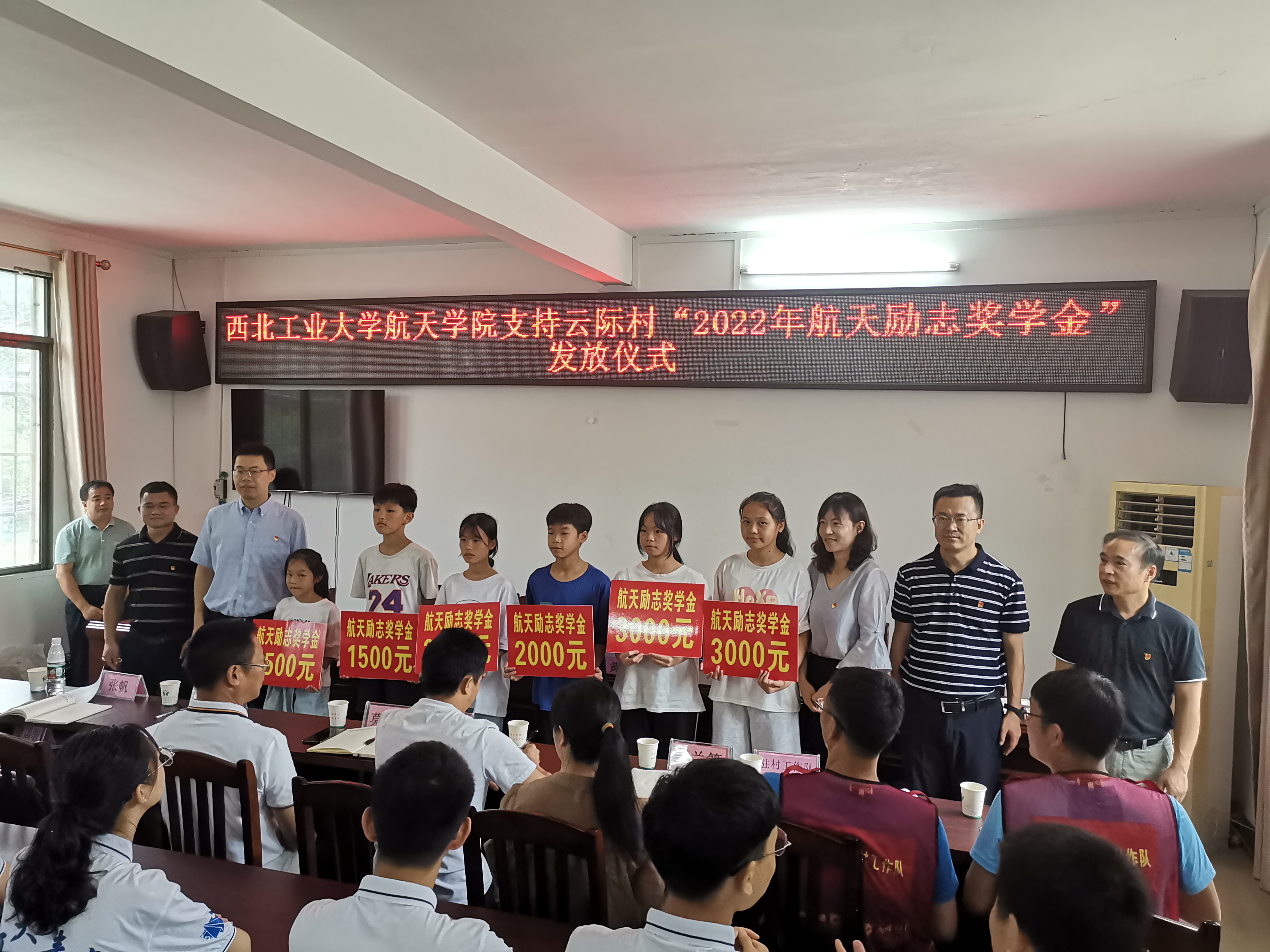 聚焦航天励志,激发内生动力。7月17日,航天学院党委与广西融水县融水镇云际村党总支部共同召开2022年“航天励志奖学金”发放仪式,奖励6名积极向上、品学兼优的中小学生,激励他们立大理想、有大梦想,立大志向、有大担当,鼓励他们成长为建设国家、回报家乡的云际人才。2019年航天学院党委在云际村设立“航天励志奖学金”,坚持把思想扶志作为党建帮扶的重点工作,激发中小学生、党员群众内生动力,积极营造励志拼搏、立志建设美丽家乡的精神风貌,3年来共资助18名成绩突出、品学兼优的中小学生。