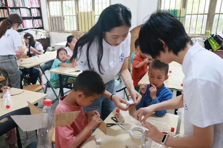 “星星烛火,点亮梦想”实践队积极践行青年大学生的社会责任,选择以“点亮航天梦想”为主题,面向青少年开展科普工作,。在短暂的12天里,实践队准备了近50节课,总计40小时,2400分钟。开设专业课辅导(语数英)、视野开拓类(火箭介绍、机器人介绍、无人机介绍)、主题教育类(安全教育、爱国教育、学校宣传、共青团普及)等课程,同时举办水火箭制作、固体火箭拼装、三航特色积木拼装等活动。实践活动激发青少年好奇心和求知欲,引导孩子们树立了科学精神,激发了科学兴趣,增强了创新意识。