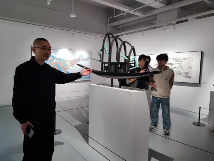 2023(西安)当代艺术邀请展”是以“航空航天航海”为内容的当代艺术展。本次展览以“时空探索”为主题,展览现场以时间顺序为节点将重要历史事件、历史人物与关键元素(航空航天航海工具的发明与创新)等串联起来,呈现出人类千百年来对宇宙星辰和海洋世界的追问、探索以及矢志不渝的梦想。此次学习将潜移默化提高同学们的艺术审美和人文素养,加深同学们对学校精神文化的理解和感悟。