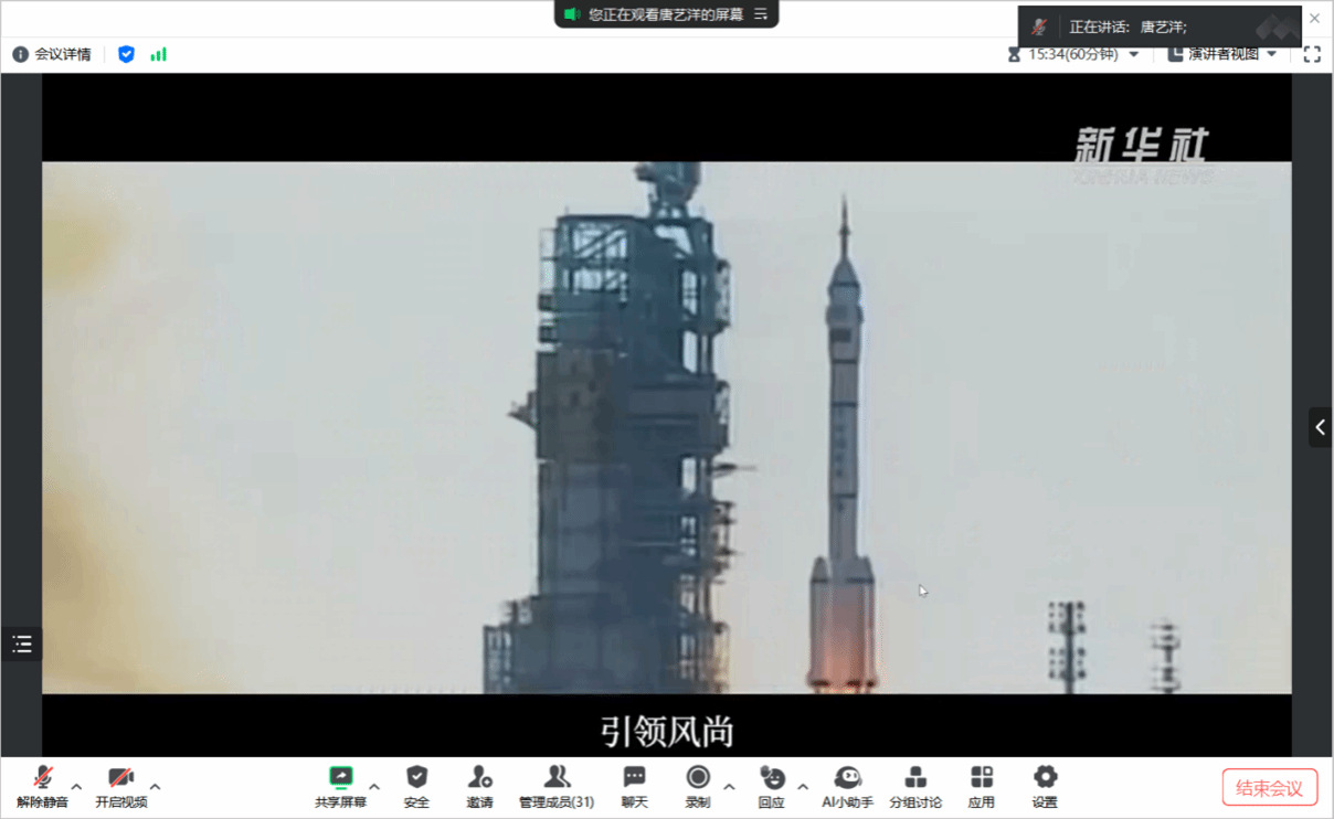的学生,我深感青年的责任重大。航天技术是国家安全和发展的重要支柱,而我们作为青年一代,肩负着不断创新、提高科技水平、为国家航天事业发展贡献力量的使命,早日实现科技高水平自立自强。习近平总书记在讲话中对我们新时代青年的信任和期望,让我更加坚定了在航天领域追求梦想的决心。