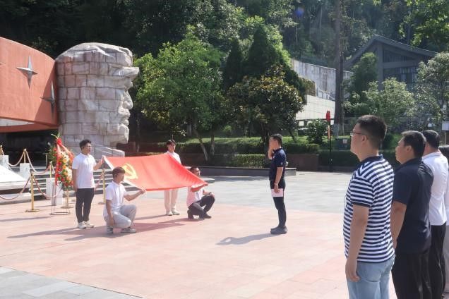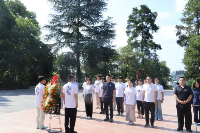 8月1日上午,实践队前往遵义红军烈士陵园,拾级而上,“红军烈士永垂不朽”的纪念碑在晨光中庄严肃穆,在黄越书记的带领下,队员们向红军烈士纪念碑敬献花篮,鞠躬致敬,缅怀为革命事业英勇献身的先烈们。在韩冬书记的带领下,实践队员们在纪念碑前重温入党誓词,庄严宣誓。