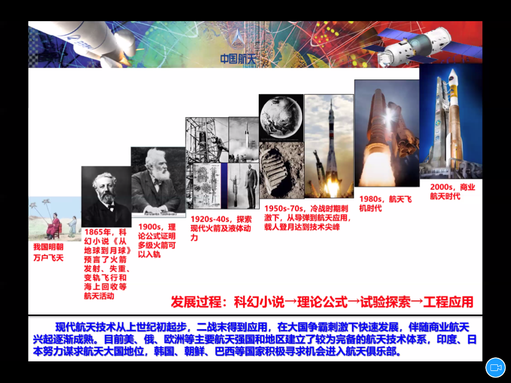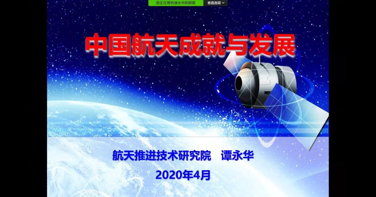 4月22日,在第五个“中国航天日”来临之际,西北工业大学举办翱翔名家讲堂,西北工业大学知名校友、中国航天科技集团第六研究院谭永华研究员作题为《中国航天的成就与发展》,近千名师生齐聚云端聆听了本场报告,报告会由航天学院党委副书记(主持工作)岳晓奎主持。