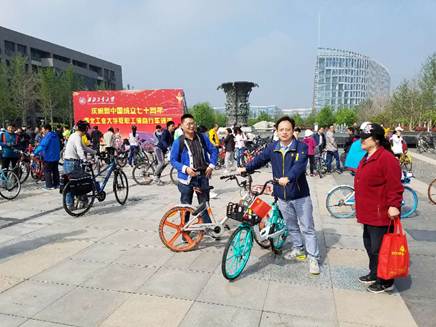 为响应学校工会关于“庆祝新中国成立七十周年”教职工骑自行车郊游活的号召,2019年4月13日上午,西工大航天学院工会组织近40名教职工参加了此次郊游活动。