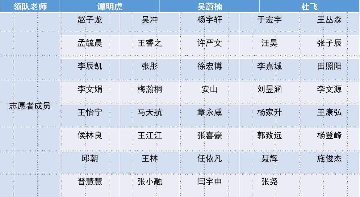 志愿者服务队融合了学院专兼职辅导员、党员骨干、团员骨干、积极分子等共计42人。该服务队以服务学生为宗旨,主要开展三个方面的工作:一是统一指挥,周密部署。志愿者服务队将根据学院每日教学安排,提前一天将志愿者分配到各个班级,确保及时跟踪每一堂课;二是全时相应,及时高效。服务队成员前期进行全时段学习,熟悉了解雨课堂等网络授课平台使用方法及各类应急处理措施。从24日开始将进行全时段分级服务,确保每堂课有人盯,每个问题及时解决;三是及时反馈,优化提升。每位志愿者将根据课堂教学结果总结经验问题,服务队将根据大家所反馈的问题进行汇总,后期将优化大家的工作机制,保证高效完成志愿服务。