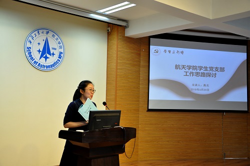 2018年6月20日下午5点15分,航天学院在4号楼6楼多功能报告厅举行了主题为“学生党支部工作思路”研讨会。本次研讨会邀请高戈老师作为主讲人,与大家研讨学生党支部工作的标准和规范。学生党支部全体委员、党员骨干参加了此次研讨会。研讨会由学院研究生辅导员罗淑娟老师主持。