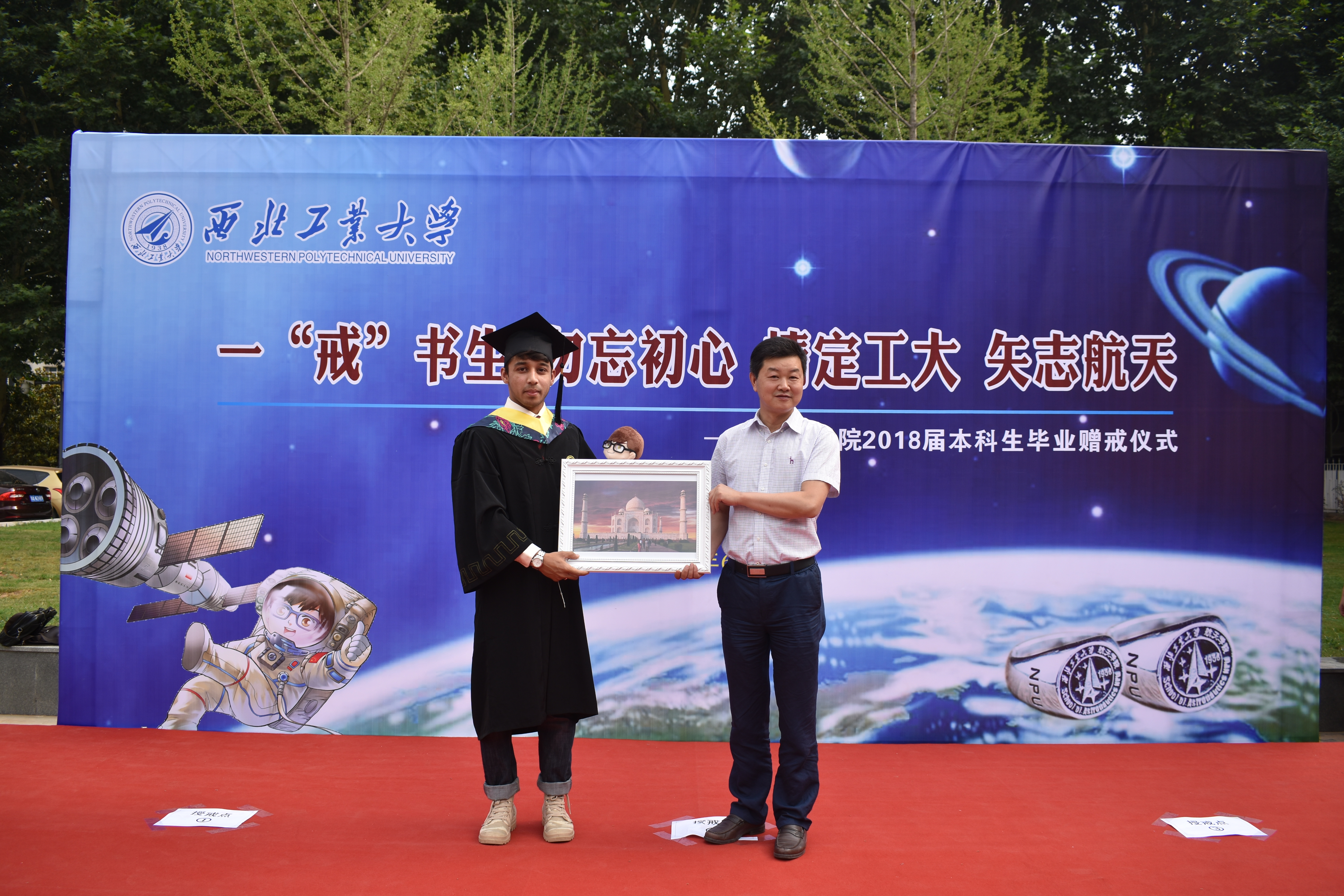相信未来,同学们一定会记着这几年在航天学院的学习与生活,更不会忘记学校、学院教给他们的点点滴滴,“一‘戒’书生、勿忘初心,情定工大、矢志航天”必将铭记于每一位同学的心中,他们的青春年华必在为国家、为人民的奉献中换发出绚丽光彩。